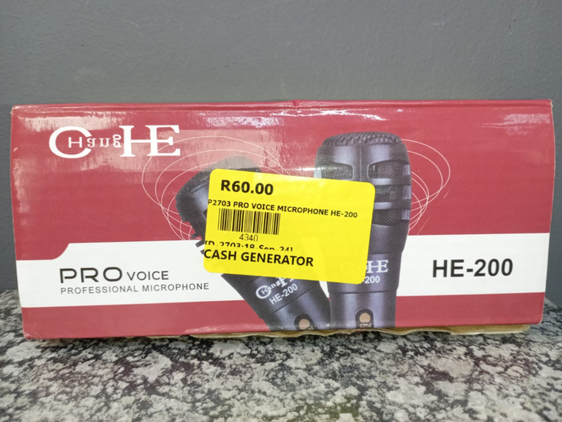 The Pro Voice HE-200 microphone is ideal for professional and home use. It offers clear audio quality for recordings and presentations, housed in a durable design.